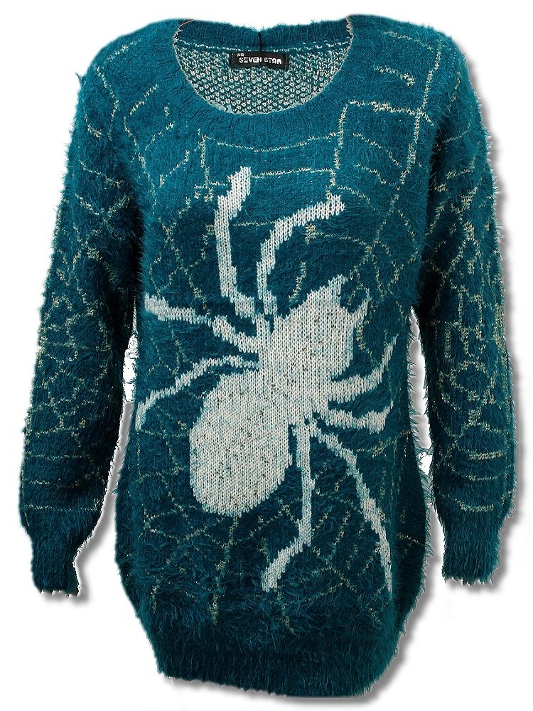 Damen Longpullover Pullover mit Strick Motiv Wolle blau Gr.40 von Seven Star Amazon