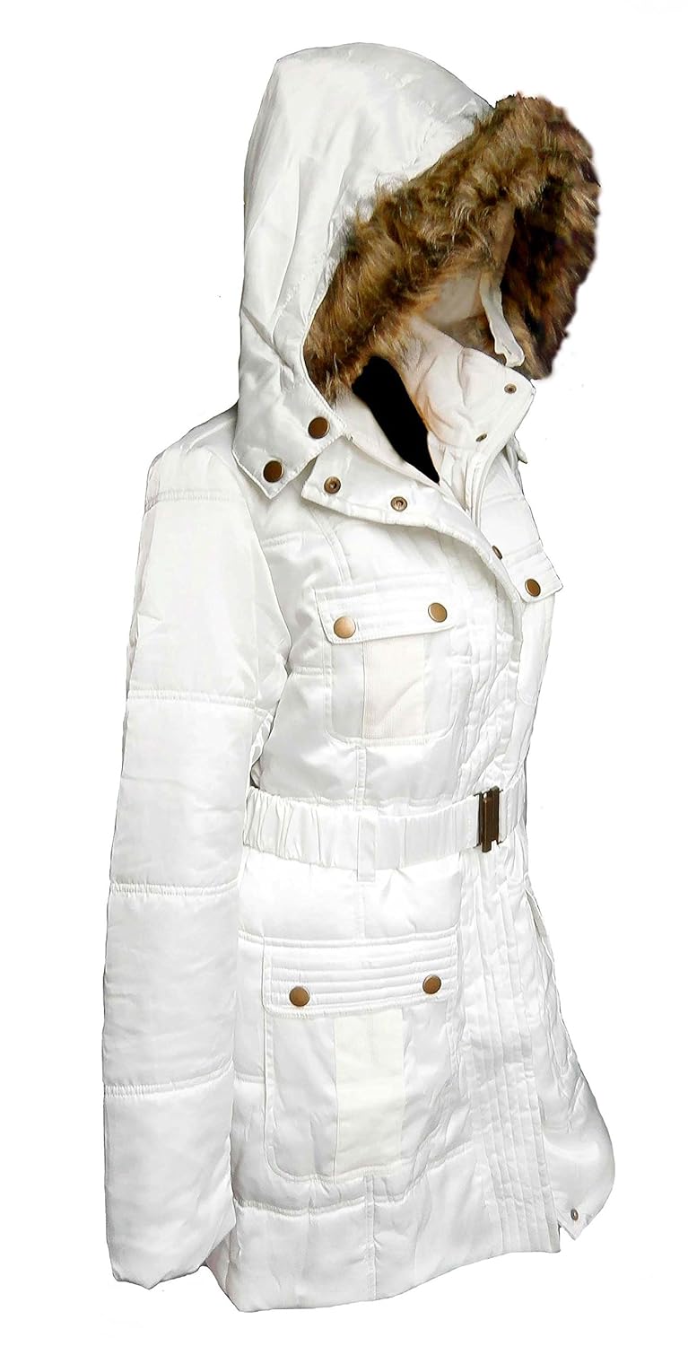 Damen Wintermantel Steppmantel Jacke Kapuze weiss Amazon